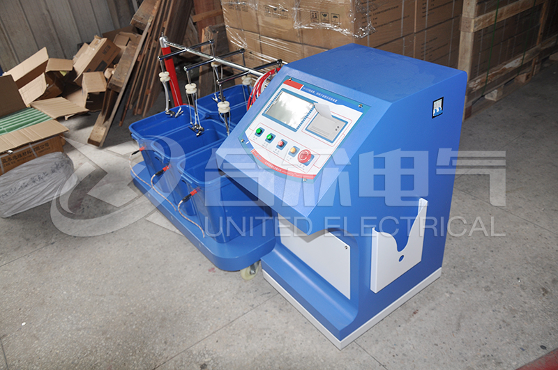 上圖是今天準(zhǔn)備發(fā)走的全自動(dòng)絕緣靴(手套)耐壓試驗(yàn)裝置,是不是很漂亮、科技感十足,這款設(shè)備優(yōu)化了傳統(tǒng)耐壓試驗(yàn)裝置的性能,使其能有效地解決了以往不規(guī)則的測(cè)試方法,簡(jiǎn)化了測(cè)試程序,提高了檢測(cè)速度,減輕了檢測(cè)強(qiáng)度,保障了檢測(cè)人員的安全,可靠地鑒別絕緣手套(靴)的泄漏電流,絕緣老化和工頻耐壓等參數(shù),可同時(shí)檢測(cè)六只絕緣手套(靴)。該裝置集高壓電源與控制系統(tǒng)一體化,接線和操作簡(jiǎn)單,布局合理可靠,移動(dòng)方便,拆裝靈活等特點(diǎn),是理想的換代產(chǎn)品。
