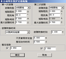 0.95倍與1.05倍的整定倍數(shù)是針對第二次故障時“非全相零序定值”的。所以微機繼電保護測試儀窗口中的“不靈敏零序定值”必須依照保護實際的整定值設置。第二次故障的“最大故障時間”應大于非全相零序保護的“整定動作時間”。