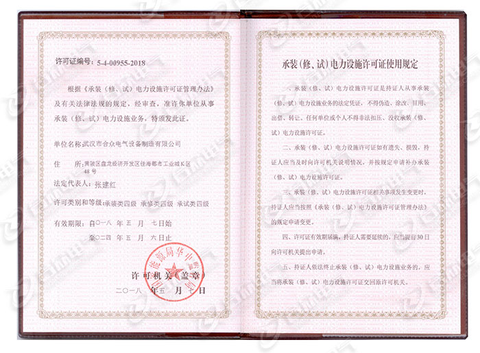 承裝(修,試)電力設施許可證