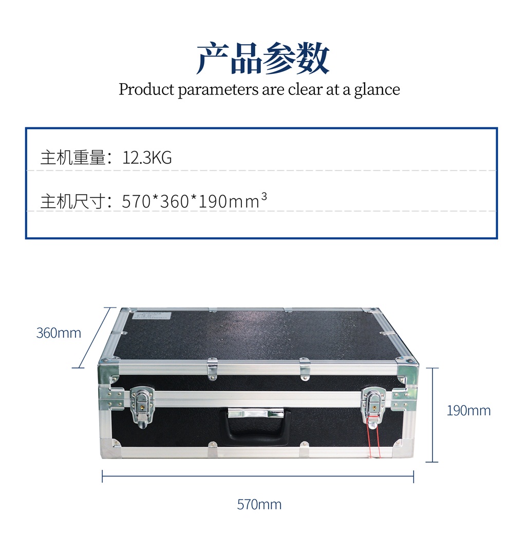 (9)機箱采用鋁合金機箱,體積小,重量更輕、更美觀、更可靠、操作簡單、功能齊全,便于野外使用。