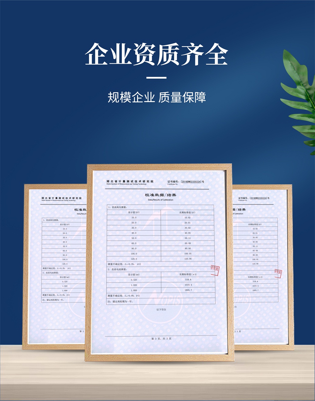 • 專業權威檢測合格證書