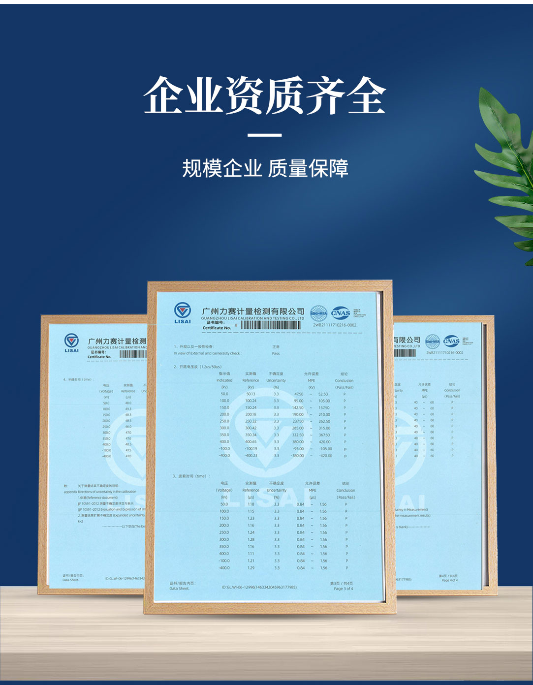• 專業權威檢測合格證書