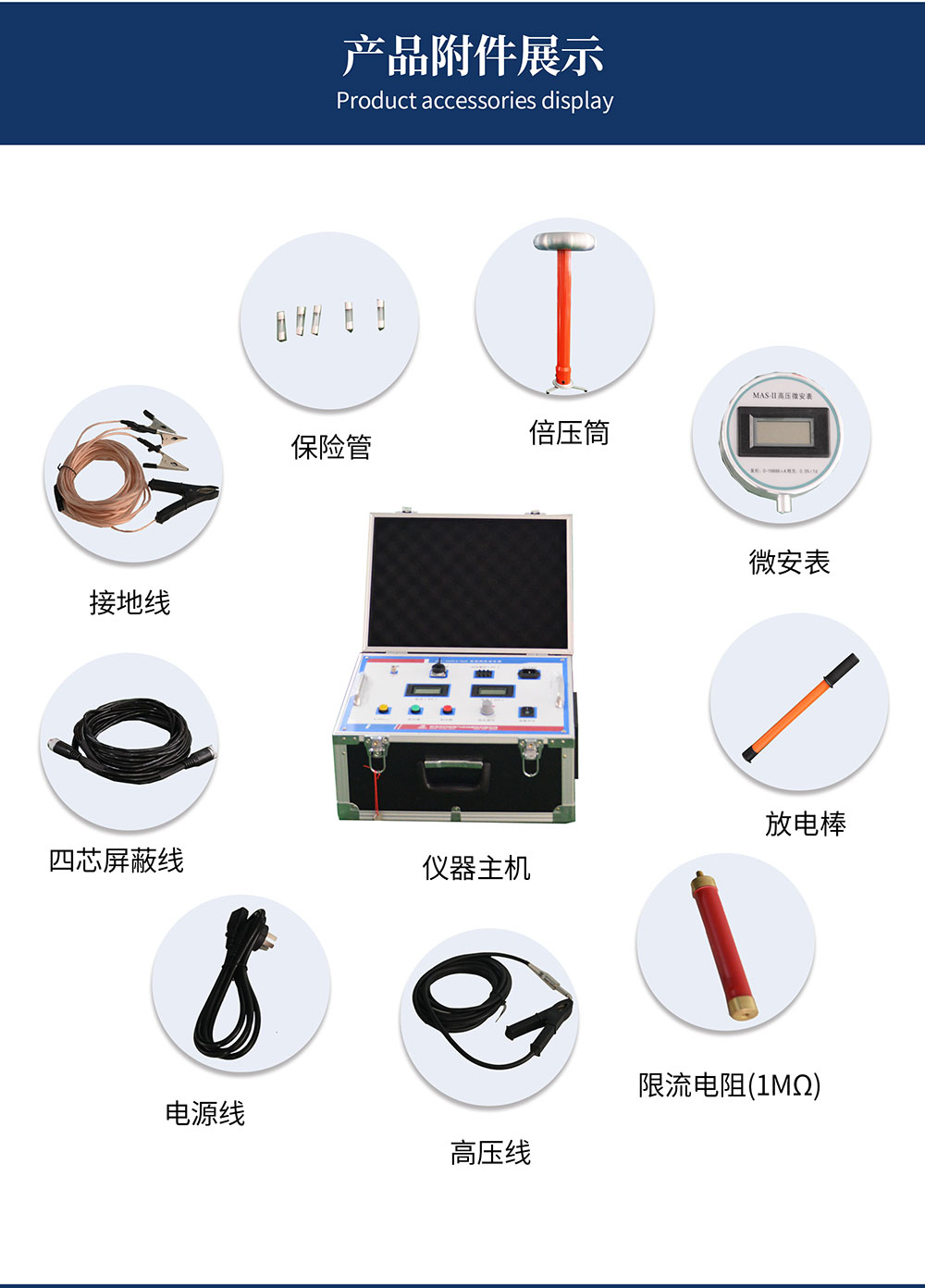 (1)精度高、測量準確。控制箱上電壓表直接顯示加在負載試品上的電壓值,使用時無需外加分壓器,接線簡單。儀器具有高、低壓端測量泄漏電流,高壓端采用圓形屏蔽數字表顯示,不怕放電沖擊,抗干擾性能好,適合現場使用。