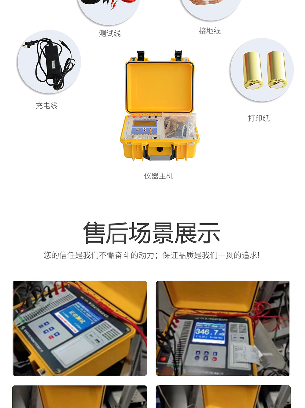本測試儀器是一款創新型產品,內置大容量鋰電池,儀器與測試線采用機線一體設計,產品體積小巧,便于攜帶。產品不僅適合變壓器、互感器、電抗器等感性試品的測量,而且適合銅排、導線、開關觸點等阻性試品的測量,儀表測試速度快、準確度高。