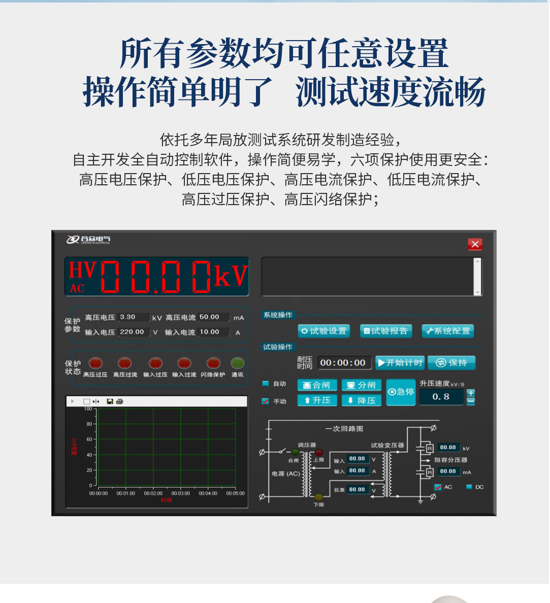 10、可設置多級階段式升降壓,設置好目標電壓后,系統自動升降壓,無需人工干預,并可實時顯示升壓曲線圖。