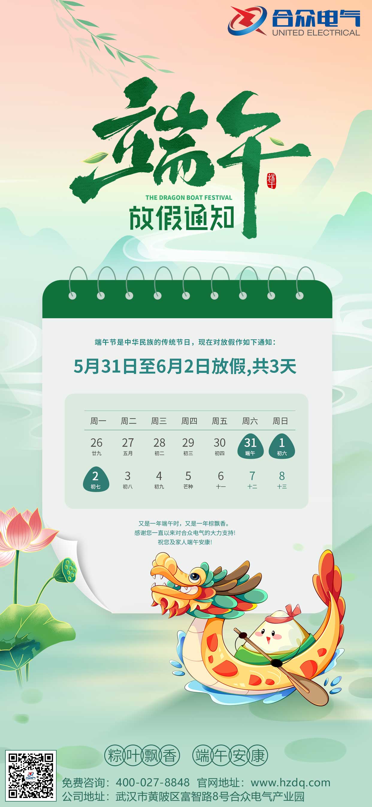 武漢市合眾電氣2025年端午節(jié)放假通知